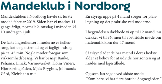 Mandeklubben mødes normalt anden onsdag i måneden kl. 10.00 i Sognegården.
